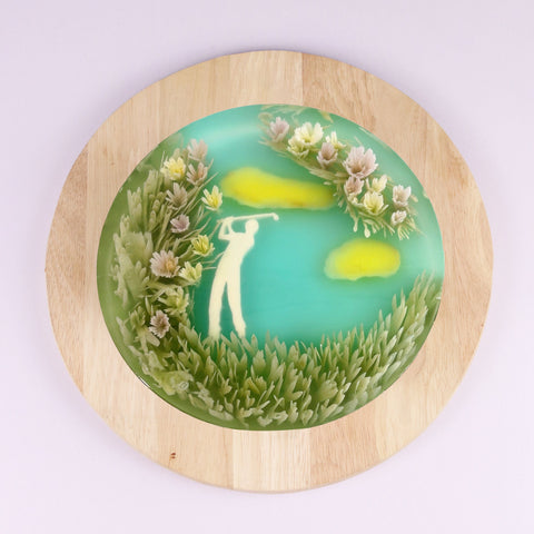 Swing your way for golfer's 3D jelly cake. With passion crafted just to golfers forseeing the golf course and enjoying this crafted 3D jelly cake. Choice of either lychee, longan or pineapple.