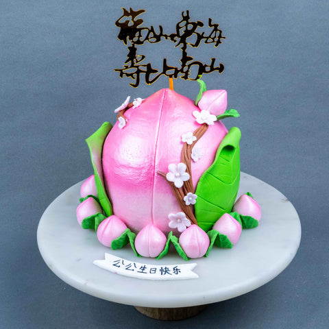 Your grandparent's birthday coming soon? Grab one Longevity Peach Cake for your grandparents. Buttercream finished cake design with handmade fondant small peaches and cherry blossoms. The longevity peach symbolize the peaches of immortality, also wishing them long and healthy life. You will be your grandparent's favourite grandchild after you get them this delicious Longevity Peach Cake