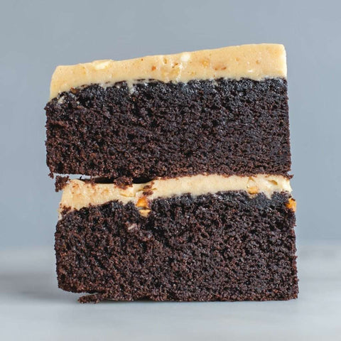 Chocolate sponge cake, cream cheese, peanut butter and peanut chunks