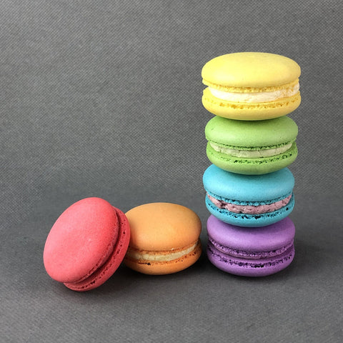 Sweeten up someone's day with a box of assorted French macarons with a set of 6 pieces! Crunchy surface macaron with chewy and soft with a melt-in-a-mouth texture. It comes with assorted rainbow colours that are suitable as a sweet gift for your loved ones! Set of 6 pcs macaron with rainbow colour comprise of 6 flavours which are Raspberry (Pink), Orange (Orange), Lemon (Yellow), Matcha Green Tea (Green), Blueberry (Blue) and Yam (Purple). It's perfect for gifting!