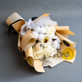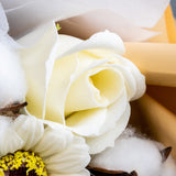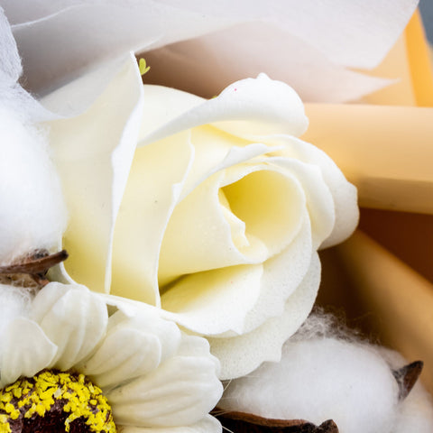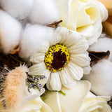 💐 3 stalks of Cream Rose soap, 1 stalk of Cream Daisy Soap Flower, 2 stalks of White Cotton, 2 stalks of Bunny Tails & Dried Caspia