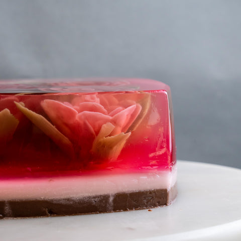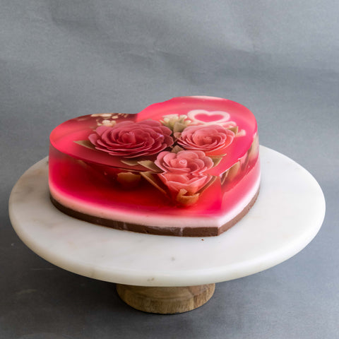 Delicious Mix flowers with 'LOVE' wording on 3D art jelly with Dark Chocolate combination will definitely perfect for your love want. Love at first bite and refreshing dessert which is less sweet. Available in 2 flavours: Chocolate and Lychee.