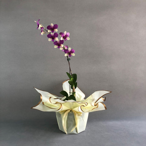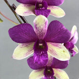 Purple with Yellow Green Dendrobium Orchids is a dendrobium orchid with 3 similar petals called as the 3 petals dendrobium. These distinct 3 petals of this flower are bright purple with yellow-green contrasting sepals. Very bright flowers. These dendrobium orchids have multiple blooms per stem and are easy to grow. A must-have in the Dendrobium Orchids collection.