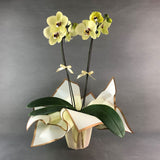 Yellow Phalaenopsis Orchids plants represent happiness, loyalty, friendship, and new beginnings. These yellow orchids with a mixture of yellow and red throats have at least 3 to 6 blooms per stem, and each bloom is 3 inches to 4 inches wide.